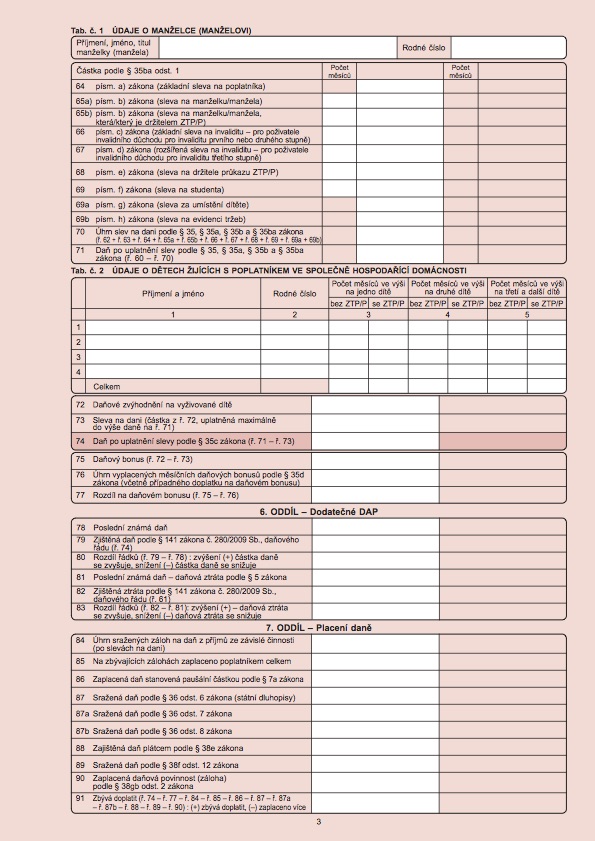 5. ODDÍL – Uplatnění slev na dani a daňového zvýhodnění